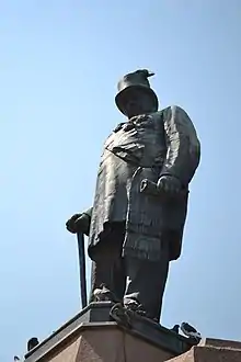 Commandée et financée en 1896 par Sammy Marks (1884-1920), un financier sud-africain et confident de Paul Kruger, la statue en bronze fut fondue à Rome par Francisco Bruno sur un modèle conçu par Anton van Wouw. Complété par des bas-reliefs et par 4 autres statues représentants des soldats-citoyens boers, elle est achevée en 1899. Érigée sans ses ornements dans un parc de Pretoria en 1913, la statue est déplacée devant la gare de Pretoria en 1924 où elle est pour la première fois accompagnée de ses bas-reliefs et de ses 4 sentinelles. Le monument est érigé sur son emplacement actuel sur church square en 1954.