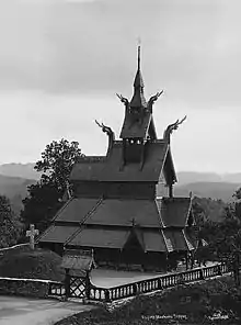 La stavkirke de Fantoft fut tout d'abord construite vers 1150 à Fortun, près du Sognefjord (L'église en bois debout de Fortun), mais a été transférée à Fantoft en 1883[1] et reconstituée à la manière de l'église en bois debout de Borgund. Elle a été incendiée et entièrement détruite le par des membres de l'Inner Circle lié au black metal. L'un des incendiaires présumés, Varg Vikernes[2], soutient que cette date a en fait été choisie pour commémorer le pillage de Lindisfarne par les Vikings du Hordaland le , qui est souvent considéré comme le véritable début de l'ère viking.[réf. nécessaire]