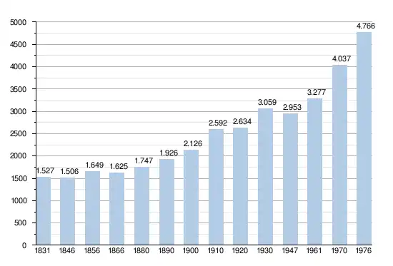 - Source: DGS , de 1831 à 1981=recensements population; à partir de 1990 = nombre d'habitants chaque 1 janvier