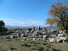 L'agora de la ville, ou place du marché, est située au sud-ouest du village actuel. On suppose qu'il y a également eu un gymnase dans la ville, car une inscription mentionne le poste de gymnasiarque[2].