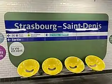 Une plaque nominative du quai de la ligne 4, alors en travaux,