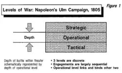• le niveau opératif, où est planifiée et conduite, sous la responsabilité du commandant du théâtre d'opérations, la campagne militaire interarmées qui répond aux objectifs fixés par le niveau stratégique.