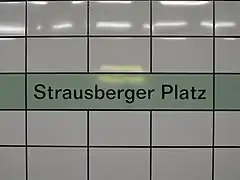 Strausberger Platz est une station de la ligne 5 du métro de Berlin. Elle est située à l'est de la place Strausberger, sous la Karl-Marx-Allee dans le quartier de Friedrichshain à Berlin en Allemagne.