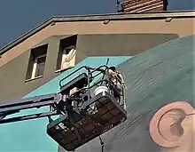 Street artist (le muraliste Piet Rodriguez) en action, rue D'Alembert à Grenoble, lors de l'édition 2018.