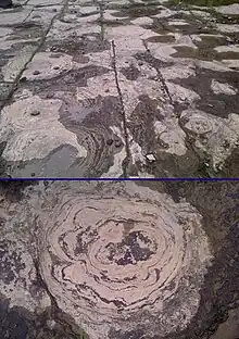 - une variété « pustuleuse » à Entophysalis, la plus souvent exondée par la marée. Ces stromatolithes sont peu ou pas laminés et moins denses, en blocs globalement circulaires d'un mètre de large et de dix centimètres de hauteur. Ils sont essentiellement produits par la bactérie Entophysalis major, qui pourrait descendre d'Entophysalis, ce qui en ferait la lignée vivante directe la plus ancienne connue sur la terre pour un organisme non-fossile.