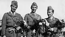 Folke Frölén, Hans von Blixen-Finecke, et Olof Stahre vainqueurs du Concours complet d’équitation, par équipes.