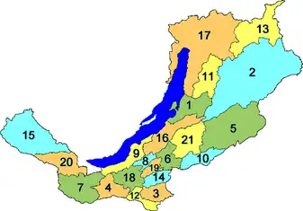 | 19 | Raïon de Tarbagataï | Тарбагатайский район | Тарбагатайн аймаг | 81 250 | 3.3 | 25 600 | 7.76 | Tarbagataï |