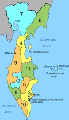 Liste des subdivisions régionales du kraï du Kamtchatka[1] :
