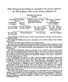 La descendance des deux filles d'Henri VII qui atteignirent l'âge adulte, Marguerite et Marie, fut la première et principale issue de la succession.