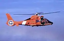 - HH-65B Dolphin : Initialement la carrière du HH-65A devait s’achever en 2006 et en 2000 une étude sur l’évolution des missions de sauvetage à courte portée (SRR pour Short Range Rescue) fut lancée. Cette étude a conduit à un programme de modernisation (SLEP ou Service Life Extension Program) de la flotte : refonte de l’avionique, remplacement de la transmission pour accroître la charge utile. Dès 2004 les appareils ont progressivement été modifiés afin de prolonger leur carrière jusqu’en 2015, devenant après conversion HH-65B.