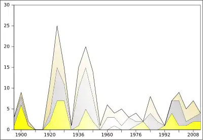 | Konrad Stäheli | 1900 | 3 | 1 | 0 | 4 | |
