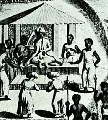 Un roi Funj de Sennar et ses ministres tels qu'ils sont représentés dans un livre de Félix Mengin, 1823.