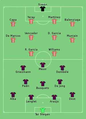 - Le match est joué à huis clos en raison de la pandémie de Covid-19 qui sévit en Espagne.