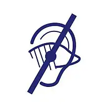 Le logo « surdicécité » représente la superposition de la surdité (oreille barrée) et de la cécité (œil barré).