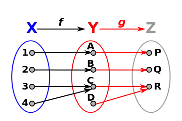 Soit f une application de X dans Y. Si f est « inversible à droite », c'est-à-dire[2] s'il existe une application g de Y dans X telle que la fonction composée f∘g soit égale à l'application identité sur Y, alors f est surjective (d'après une propriété vue plus haut).