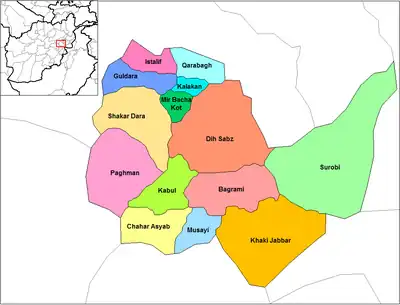 District de Saroubi (en vert), dans l'Est de la province de Kaboul