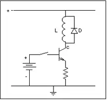 La règle est que, pour éviter les surtensions, il faut protéger les circuits en prévoyant un chemin pour le courant de la bobine quand le circuit inductif s'interrompt. Dans le diagramme figure 1 on trouve l'exemple d'un transistor qui contrôle le courant dans une bobine (celle d'un relais, par exemple). Quand le transistor se bloque, l'énergie emmagasinée dans l'inductance fait que la tension à ses bornes s'inverse et que le courant qui circule charge les capacités parasites entre spires de la bobine. La tension appliquée entre collecteur et émetteur du transistor étant alors égale à la somme de la tension d'alimentation et celle aux bornes de la bobine, elle peut facilement dépasser la tension autorisée et le détruire. En plaçant une diode (D, dite diode de roue-libre), comme dans le diagramme, le courant trouvera un chemin au moment de la coupure et la tension sera limitée à la chute de tension de la diode à l'état passant. La difficulté fonctionnelle de cette protection est que le courant met plus longtemps à diminuer, ce qui, dans certains cas, peut être un inconvénient. On peut réduire ce temps en ajoutant en série, par exemple, une diode zener ou une diode Transil.