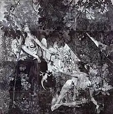 - Le Paradis en morceaux, estampe de 3 mx 3,20 m, 2011-2013 - Médaille d'or de la ville de Saint-Maurice au salon de 2014 - Exposé à l'église Saint-Eustache de Paris en 2014-2015