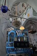 La bimah compte six marches symbolisant les six jours ouvrés de la semaine, le niveau supérieur représentant le shabbat. L'Arche sainte comporte trois sections et contient des rouleaux de la Torah rédigés par Abuhav lui-même et par Solomon Ohana de Fès.