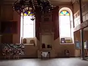 Sur le mur ouest, sous les baies de la pièce réservée aux femmes, trois tableaux représentent des scènes bibliques. Entre les portes du vestibule, deux immenses colonnes corinthiennes ont été peintes en trompe-l'œil.