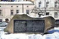 Dans les années 1990, une stèle avec une inscription en ukrainien et en anglais est élevée sur le lieu de l'ancienne synagogue. L'inscription indique que la synagogue a été détruite par les soldats allemands, mais passe sous silence la participation active des milices ukrainiennes :