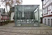 Pendant l'été 1995, un concours d'architecture est lancé pour la protection du site de fouilles contre les intempéries. L'une des propositions est la construction au-dessus du site d'un cube de verre selon les plans du cabinet d'architectes de Cassel Schulze und Schultze, mais ce projet est dans un premier temps refusé par la communauté juive et par une partie des habitants de Marbourg. L'autre solution possible était la réalisation au-dessus des ruines, d'une structure en acier portée par quatre poteaux en acier. Finalement c'est la première solution qui fut retenue. Le cube de verre est inauguré à l'été 2002.