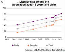 Malgré les efforts importants déployés, l'analphabétisme persiste au Maroc. Dans les zones rurales et pour les femmes, le problème est encore plus inquiétant. Selon un rapport du haut commissariat au plan en 2014, environ 53 % des femmes marocaines sont analphabètes [30]. Plus grave encore, les personnes scolarisées ne sont pas forcément alphabétisées.