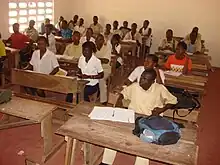 Des enfants dans une salle de classe à Abidjan. | |