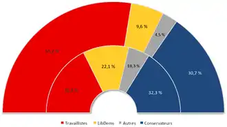 Ce mode de scrutin déforme les résultats d'une élection en permettant une répartition des sièges entre les différents partis très différente de l'expression de la volonté du corps électoral. Il se peut même qu'un parti majoritaire en voix se retrouve minoritaire en sièges[21], comme cela s'est produit au Royaume-Uni lors des élections de 1951 : les travaillistes, avec 48,8 % des suffrages exprimés, ont obtenu 295 sièges, contre 302 aux conservateurs qui n'avaient pourtant rassemblé que 44,3 % des voix.