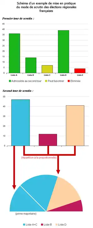 - Système mixte sans compensation (scrutin majoritaire uninominal à deux tours et proportionnel plurinominal)