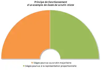 - Système mixte avec compensation (scrutin majoritaire uninominal à un tour et proportionnel plurinominal)