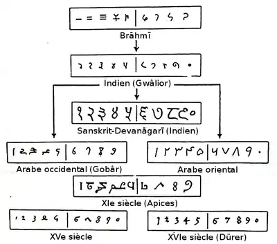 Quoi qu'il en soit, l'apport de l'Inde n'est pas négligeable : les Indiens sont les premiers à utiliser un système de notation positionnel employant des chiffres dont le tracé est indépendant de la valeur représentée.