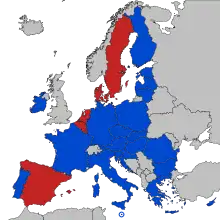 - Au Danemark, les îles Féroé et le Groenland[Note 2] sont autonomes (et ne font pas partie de l'Union européenne - PTOM).