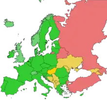Plusieurs pays voisins de l'Union européenne ne sont pas considérés comme démocratiques par ces critères. La plupart des États européens bordant l'UE sont considérés comme démocratiques ou partiellement démocratiques selon Freedom House, à l'exception de l'Arménie, l'Azerbaïdjan, de la Biélorussie et de la Russie.