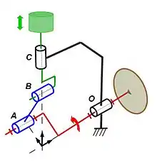 C'est le cas où l'extrémité de bielle est liée à une autre manivelle, une pédale ou un bras articulé. L'extrémité de bielle décrit un segment de courbe circulaire. Exemples :