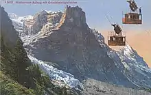 Depuis la gare des Glaciers avec le pylône intermédiaire au centre et l'aiguille du Midi à gauche.