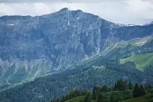 Vue depuis le nord-ouest de l'aiguille Croche avec le téléphérique de Rochebrune au premier plan.