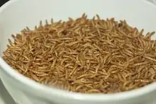 Le ver de farine sert à l'alimentation en élevage de nombreuses espèces d'insectivores : oiseaux, reptiles, amphibiens, poissons, fourmis, rongeurs…[6]