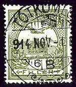 Oblitération de Tótkomlós, sur un timbre-poste du Royaume de Hongrie (1914).