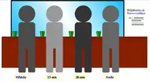 Dans cette version « concrète » de la tâche de sélection, les gens ne se trompent plus et choisissent facilement d'interroger la première personne sur son âge (car elle boit de l'alcool, équivalent de la carte D) et la seconde sur le contenu de son verre (car elle a moins de 18 ans, équivalent de la carte 7). Ces choix correspondent aux réponses logiquement justes. Rares sont ceux qui interrogent le troisième personnage sur le contenu de son verre (il a plus de 18 ans de toutes façons, carte 5) ou le dernier qui ne boit pas d'alcool (carte K).
