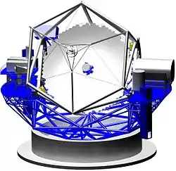 Un miroir secondaire de 3 m produira un champ visuel sans obstruction de 20 minutes d'arc de diamètre avec un rapport focal de 15. Un miroir tertiaire plan dirigera la lumière vers les instruments scientifiques montés sur une grande plateforme Nasmyth. La forme de chaque télescope sera également contrôlée par l'optique adaptative.