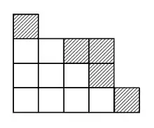 Un diagramme de Young (aussi appelé diagramme de Ferrers) est une collection finie de cases, ou cellules, organisée en lignes alignées à gauche, avec la propriété que les longueurs des lignes décroissent au sens large (chaque ligne est aussi longue ou plus longue que la précédente). La suite des longueurs des lignes donne une partition de l'entier qui est le nombre total de cases du diagramme. L'image à droite montre le diagramme associé à la partition . La partition est appelée la forme du diagramme. L'inclusion d'un diagramme de Young dans un autre définit une structure de treillis connue sous le nom de treillis de Young. Si l'on énumère le nombre de cases d'un diagramme par colonnes, on obtient une autre partition, appelée la partition conjuguée ou transposée de .