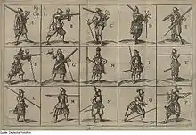 Le « drill » des soldats fut introduit par le prince Maurice de Nassau et était détaillé et exécuté avec précision, chaque mouvement requis par le chargement/rechargement du fusil étant pratiqué à plusieurs reprises, ce qui se révéla un grand avantage sur les champs de bataille. Plus tard, Gustave Adolphe de Suède perfectionna encore les formations d'infanterie et fit bon usage de la puissance de feu de la volée, en adoptant des platines de mousquets plus fiables[11], débarrassant les fantassins de leurs armures pour les rendre plus mobiles[11] et augmentant le nombre de mousquetaires[12], remplaçant les piquiers grâce à la baïonnette[13] tout en adoptant la cartouche en papier[14], assurant une augmentation conséquente du volume et de la cadence du feu tout en rationalisant la manœuvre de rechargement du fusil[15].