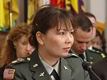Elle se destine à une carrière de diplomate avant de s'orienter vers une carrière militaire à l'université[2]. Elle parle couramment le thaï et l'indonésien[3]. Elle est diplômée en science politique à l'université d'Hawaï et en affaires internationales à l'Université George-Washington[3].