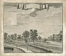 Gravure de 1739 montrant le fort de Noordwijk, situé à l'est de Tanah Abang