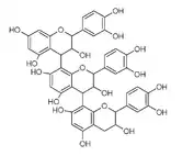 Les tanins condensés, appelés aussi tanins catéchiques, proanthocyanidines ou proanthocyanidols[1], sont des polymères de flavanols. Ils sont constitués d'unités de flavan-3-ols liées entre elles par des liaisons carbone-carbone de type 4→8 ou 4→6 (voir la structure ci-dessous). Ils forment un groupe important de composés phénoliques provenant de la condensation de molécules de flavonoïdes.