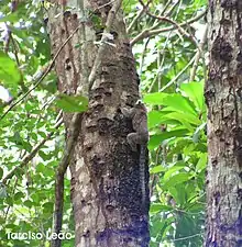 - ses relations avec l'hémiparasite Phoradendron perrottettii[18] (et les conséquences sur sa chimie[19]), et les endophytes fongiques Pseudocercospora sp., Phomopsis sp., Lecanicillium psalliotae dans les feuilles, et Stagonospora sp., Phomopsis sp. dans les tiges[20],