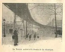 Six ans plus tard, à Paris, parmi les innombrables réalisations de l'Exposition universelle de 1900, le fameux trottoir roulant dénommé la rue de l'Avenir, en constituait l'une des attractions.