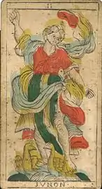 Les images ci-dessous, montrant les 22 atouts, proviennent d'un jeu gravé sur bois et colorié aux pochoirs, produit par Renault à Besançon vers 1845-58. Il est basé sur le jeu créé, vers 1810, par Jean Jerger, également de Besançon[1].
