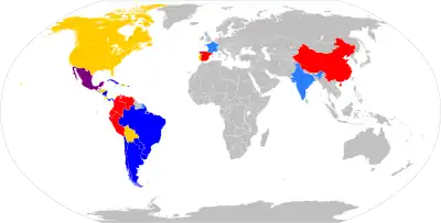 En Amérique latine la tauromachie est due à l'introduction de taureaux navarrais et de moruchos de la région de Salamanque par les conquistadors espagnols. Les jeux taurins s'implantent dès 1529 au Mexique, 1538 au Pérou, 1543 en Colombie, 1567 au Venezuela[29].